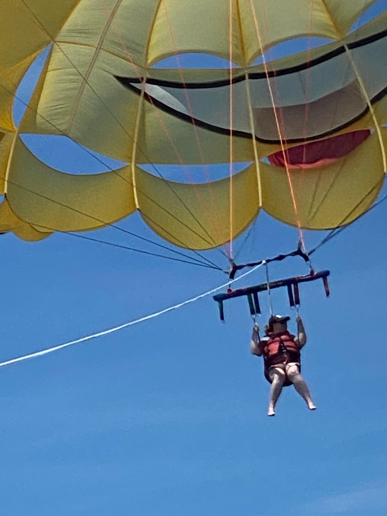 It has been on my bucket list to go parasailing. Both Anne and Kathy had already tried it and were more that happy to take pictures of my experience as the relaxed on the beach. So I went through Yolo Adventures and went with a group while the other two relaxed on the beach graciously capturing the moment on a digital photo for me. IT WAS AMAZING!!!! I went up by myself and I would do it again in a heartbeat and in fact I was a little disappointed when my time was up. I would describe it as a relaxing, zenful glide through the air.